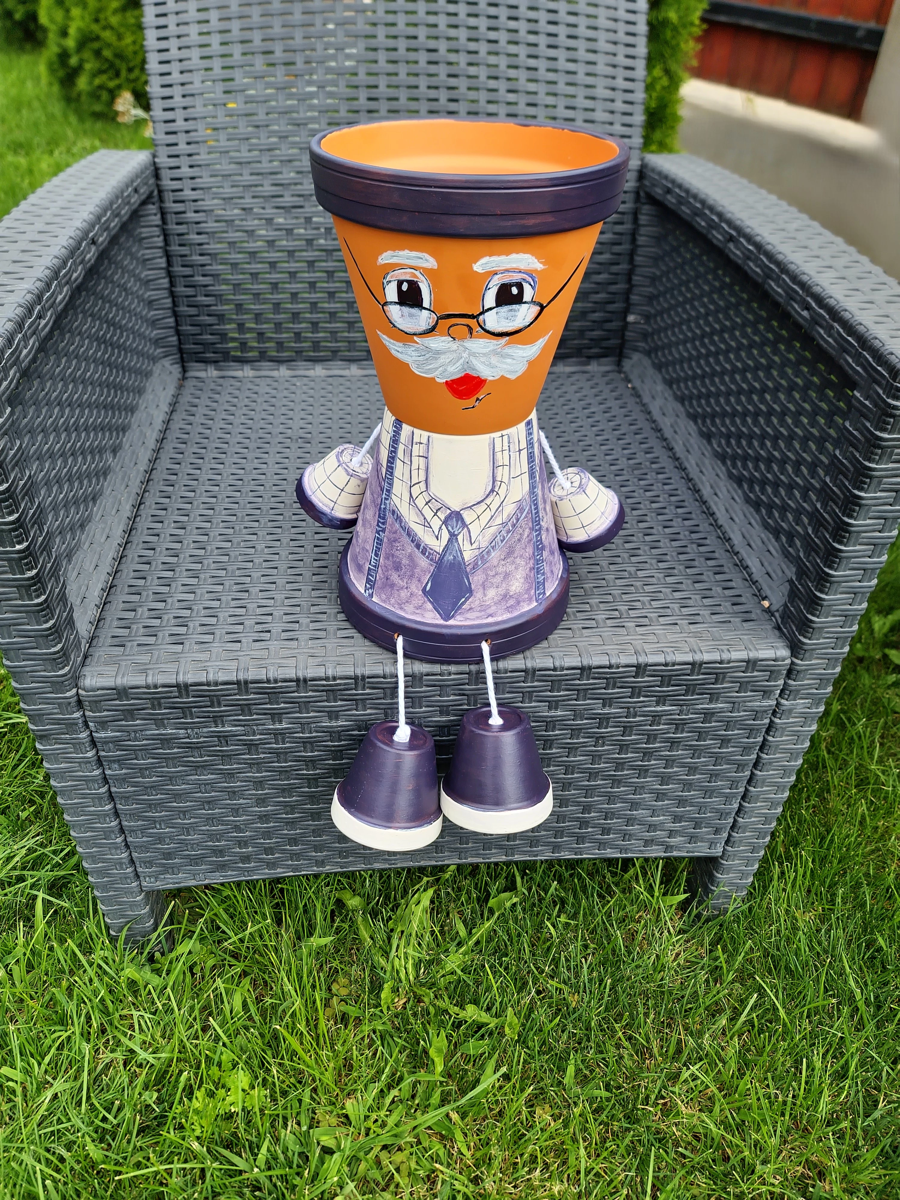 Anyagok: agyagcserép,alátétes csavar,dekor zsinór,akril festékek,vízálló bevonat